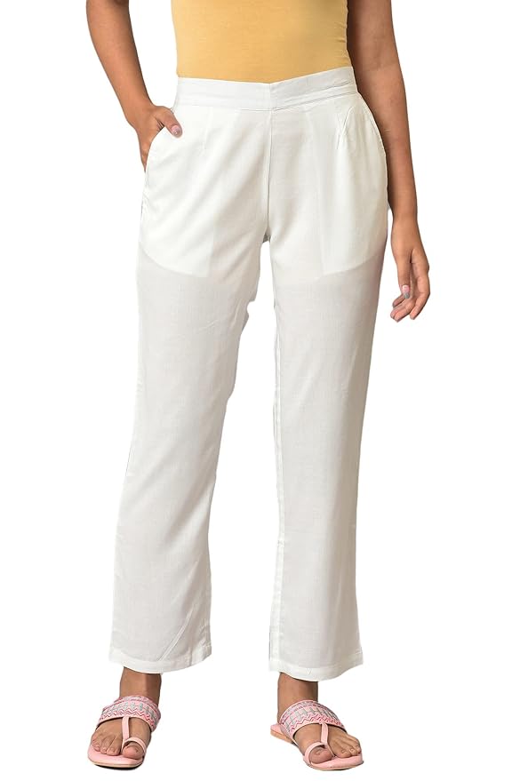 These Are Narrow Fit Palazzo Pants In Mid-Rise With Partially Elasticized Waistband. The Flat Front With Pocket On Both Sides And Comfortable Fit Of The Palazzo Give You All-Day Long Comfort.