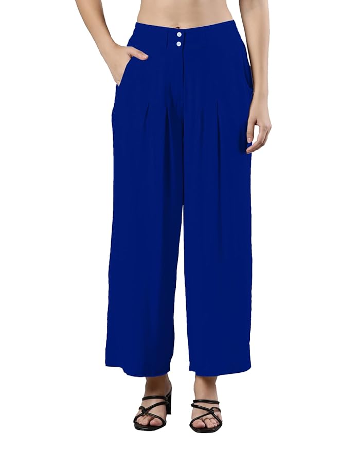 Introducing Femmora’s Flared Leg Rayon Pleated Palazzo for Women – a stylish and versatile addition to your wardrobe. Crafted from premium-quality rayon fabric, these pleated palazzo pants offer a luxurious feel and impeccable drape, ensuring maximum comfort and style with every wear.With its wide-leg silhouette and comfortable fit, this palazzo pant exudes elegance and sophistication. The front zip button adds a touch of refinement, allowing you to effortlessly dress up for any occasion. Pair it with a formal look, or style it with a casual top for a relaxed and chic vibe.Whether you’re attending a special event or enjoying a casual outing, Femmora’s Flared Leg Rayon Pleated Palazzo offers endless styling possibilities, making it a must-have staple in your closet. Experience the perfect fusion of comfort and style with this chic pleated palazzo pant from Femmora.